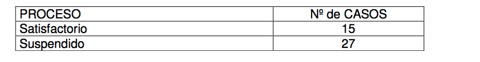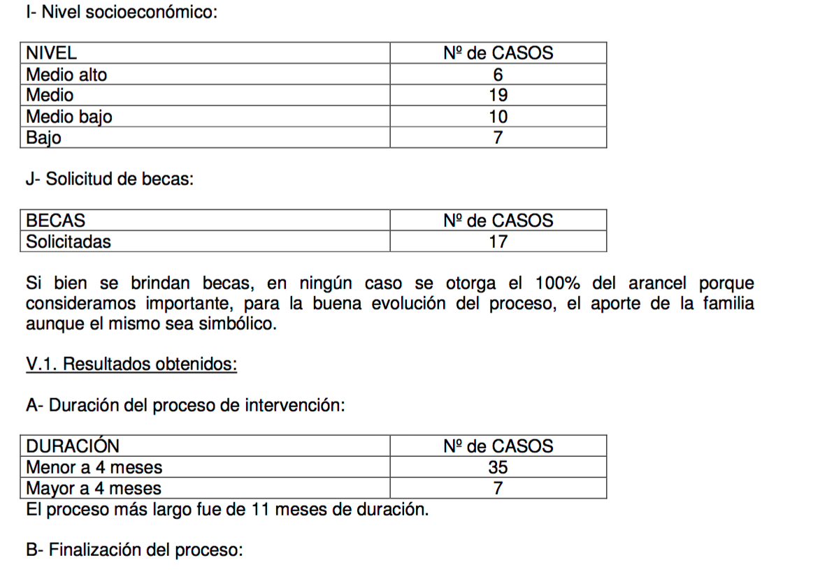 Desde la puesta en marcha del proyecto fueron atendidas 51 familias. En 9 casos se realizó solamente una entrevista. Los restantes 42 casos nos han servido para hacer las siguientes evaluaciones: